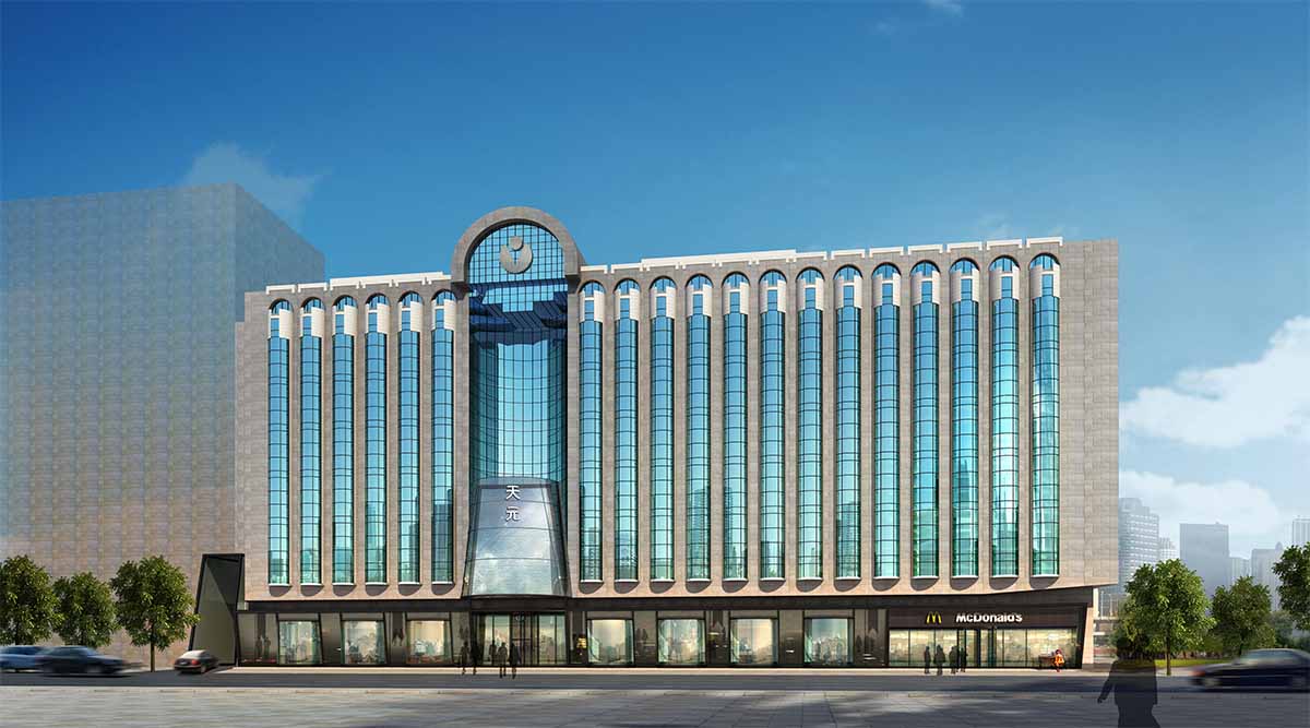 此项目是一个建筑改造项目,原建筑在90年代曾获得国家级鲁班奖,但由于时间原因,原外立面的石材剥落,窗框陈旧,建筑的形象已经不能满足现代商业的需求,故业主提出对项目进行改造但要保持原主体风格不变。
