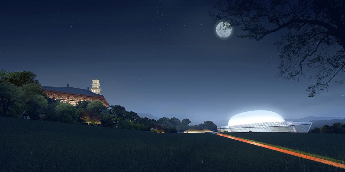 寺内传统建筑以雁塔寺为中心中轴对称排列,塔是核心景区。新建区域文化艺术中心,既作为独立的市民活动场所,也与雁塔寺的佛教文化紧密相连。虽看似不同性质的活动,但其本质是相连通的。此方案意在塑造“融通”的空间,使游人能感受到生活、文化、艺术、信仰之间的交融与连通,使整体空间合和为一。
